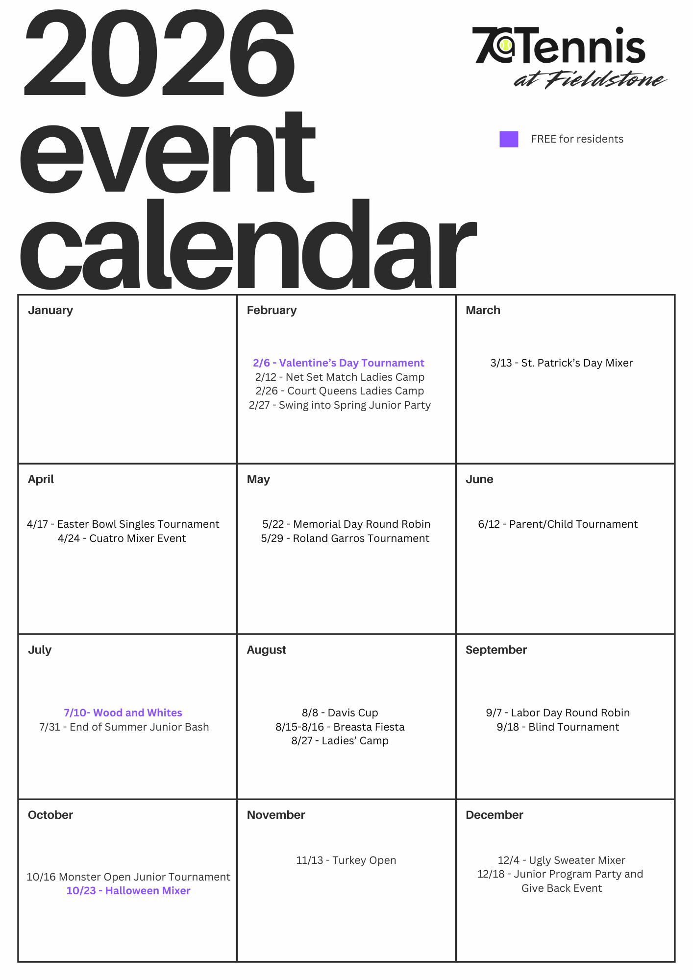 *Please note that dates are subject to change. Upcoming Events Valentine's Tournament Court Queens Camp Net Set Match Camp Junior ALTA Kick-Off